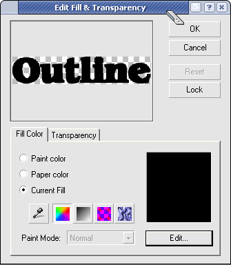 After that is done slect your blank object and click Edit » Fill This is where you add the outline You can choose the color on the dialog that pops up Here is what my setting looked like.
